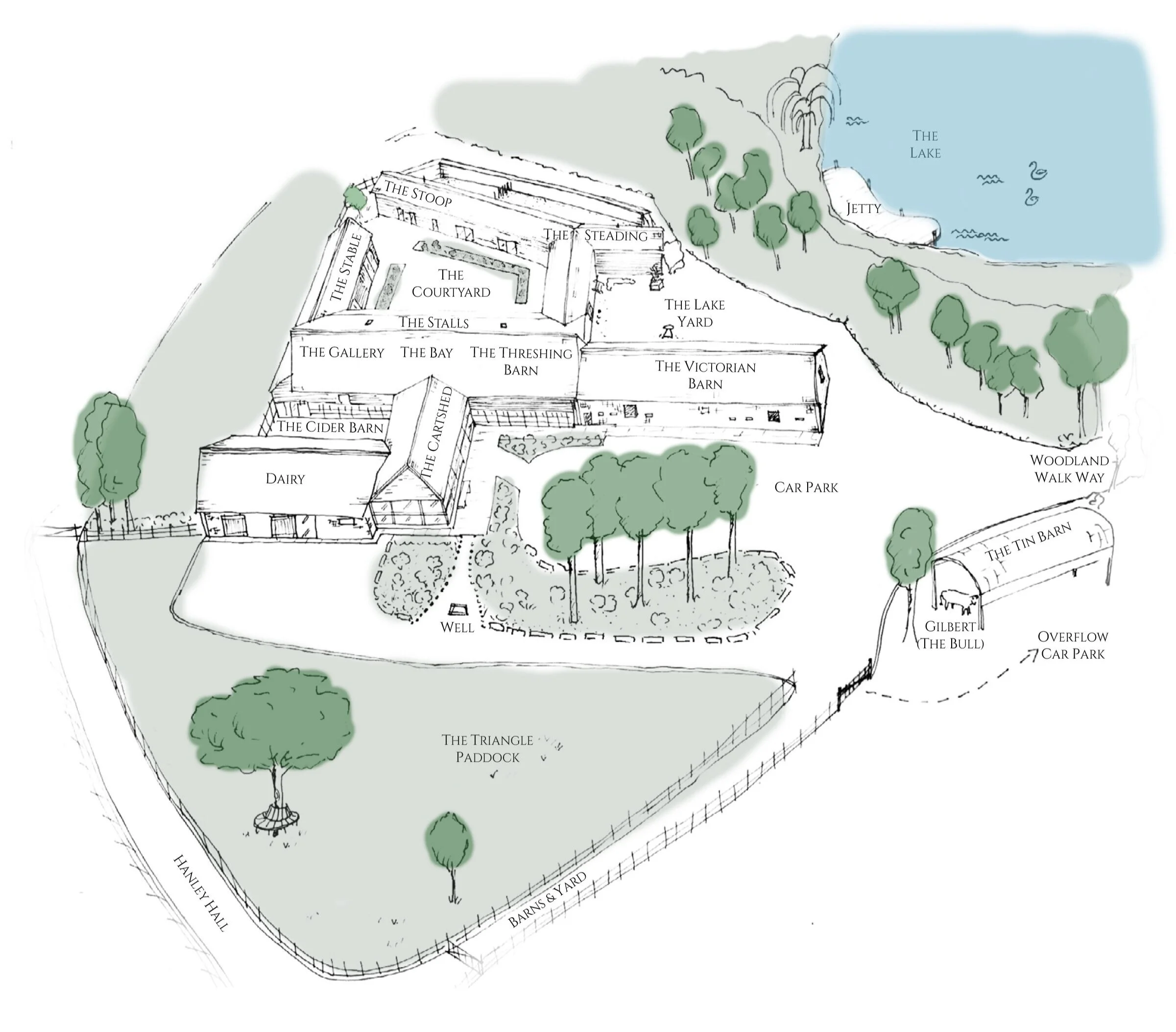 Have a look at the spaces below to find out more about each one – we can’t wait to welcome you to our idyllic lakeside farmstead.